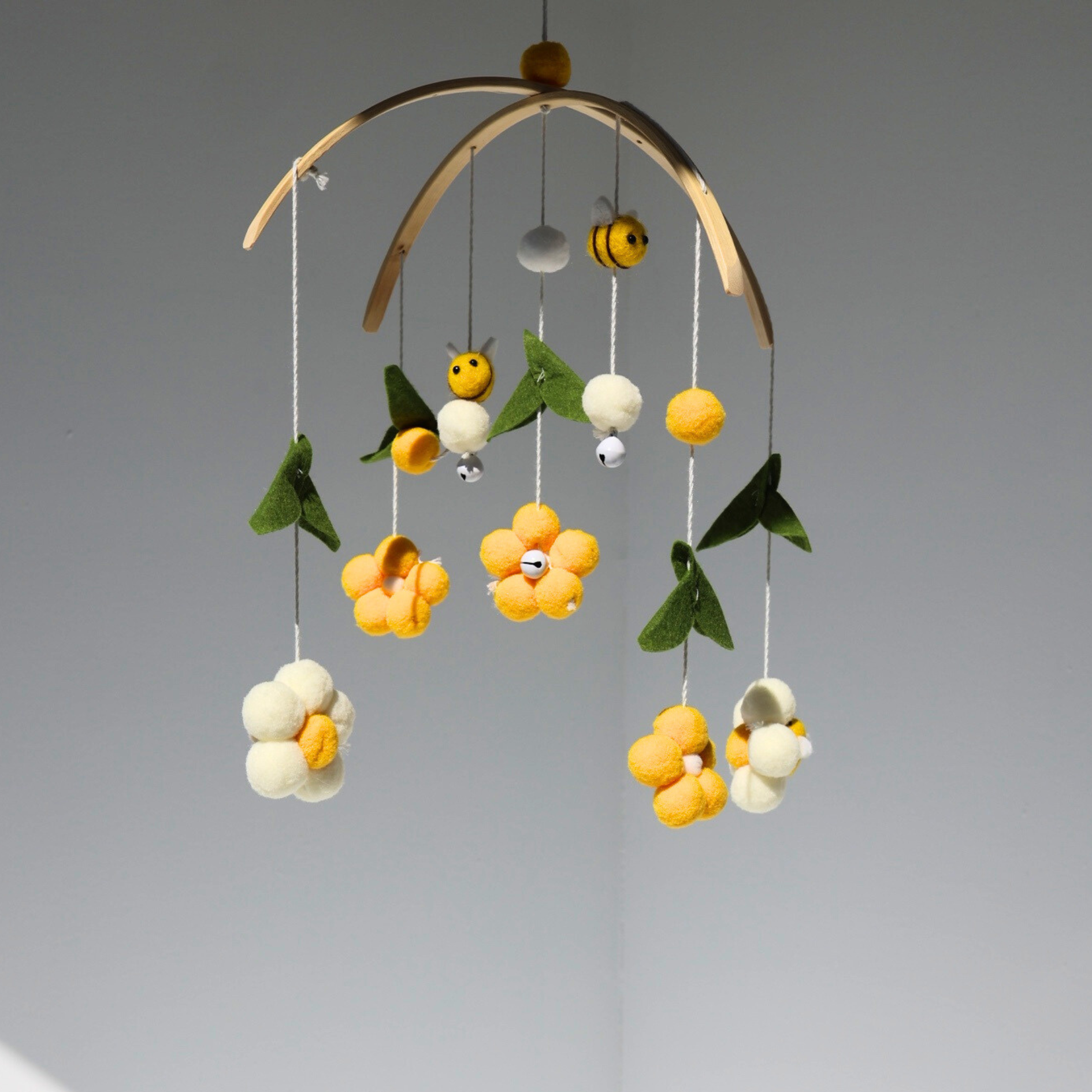 This mobile is made from Bamboo and Felt making it child friendly and durable.
